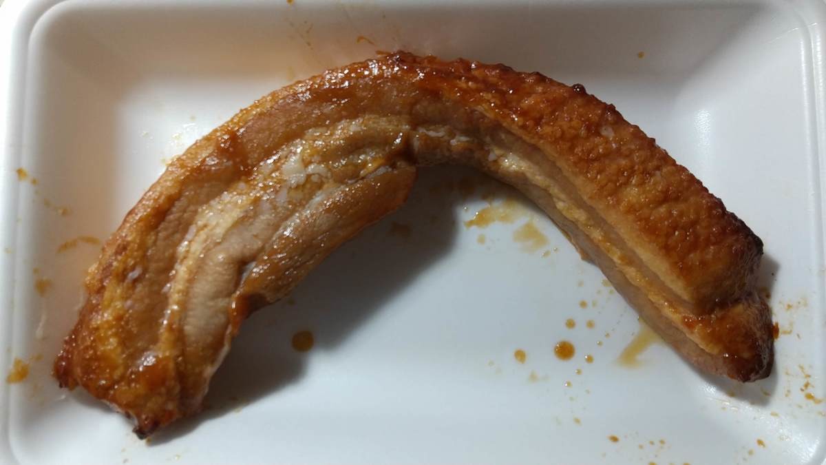味は普通においしいです。100gあたり158円と激安価格ですが、このお肉、生で買っても130円ぐらいするものなので、加熱によって縮んだことを考えれば、ほとんど原価みたいな価格で豚肉の炙り焼きを買うことができます。