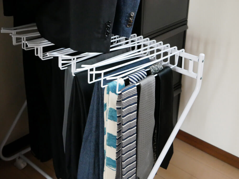 スラックスやジーンズなどの他にネクタイの収納にもオススメ。 シワにならず、一目で分かり、ジャケット・スラックスとセット収納することで朝の忙しい時間も短縮できますよね。