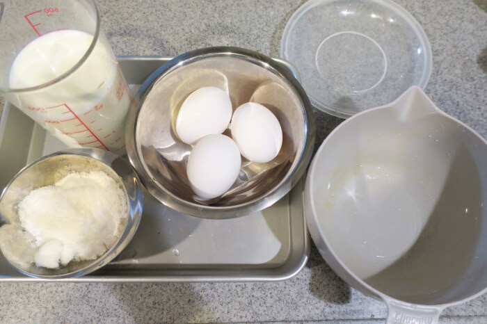 今回もっとも気になっていたのがこちら、プリンです。 ボウルサイズのプリンがレンジで本当にできる…?