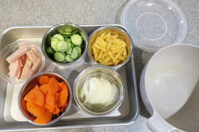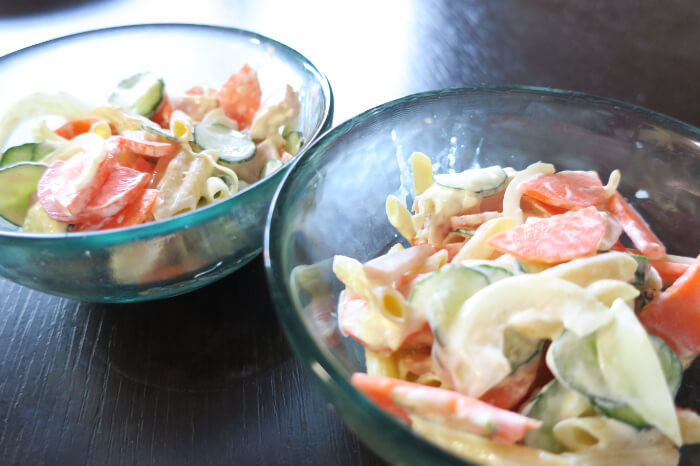 たしかに、素材を茹でる必要のあるサラダは、このボウルひとつでできてしまうので、楽そうです!
