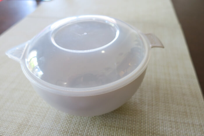 ボウル本体には小さな取っ手があり、半透明のふたは湯切りができるようになっています。