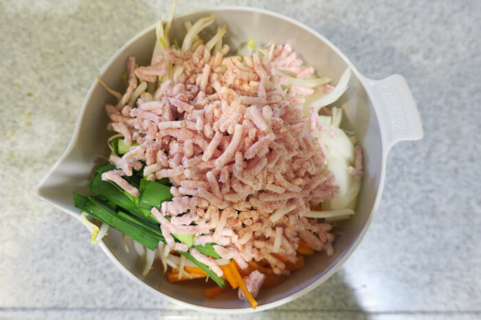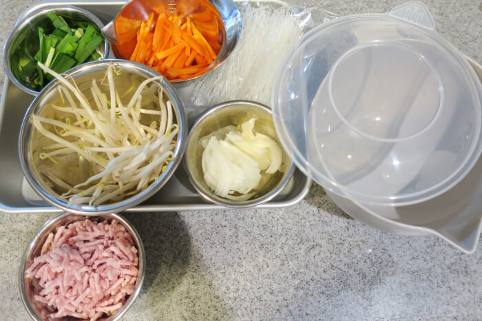 たしかに、春雨を茹でるのもこのボウルでできそうですが、肉やもやしもあるので、炒める必要があるのでは…?