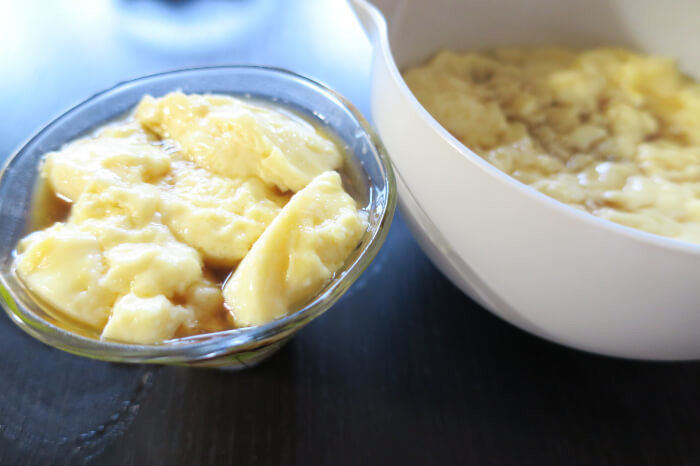 少し残った卵のかたまりも、茶こしでこすことでなくなり、なめらかに。