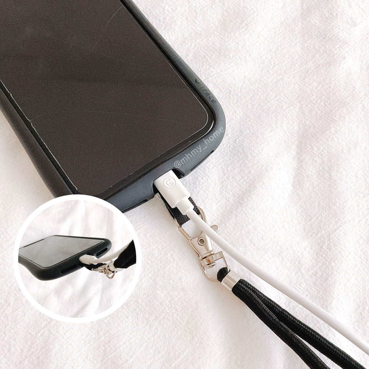 さらに、取り付けたままでも干渉しないようになっているので、そのまま充電できるのも魅力です!ストラップのみ外すこともできます。