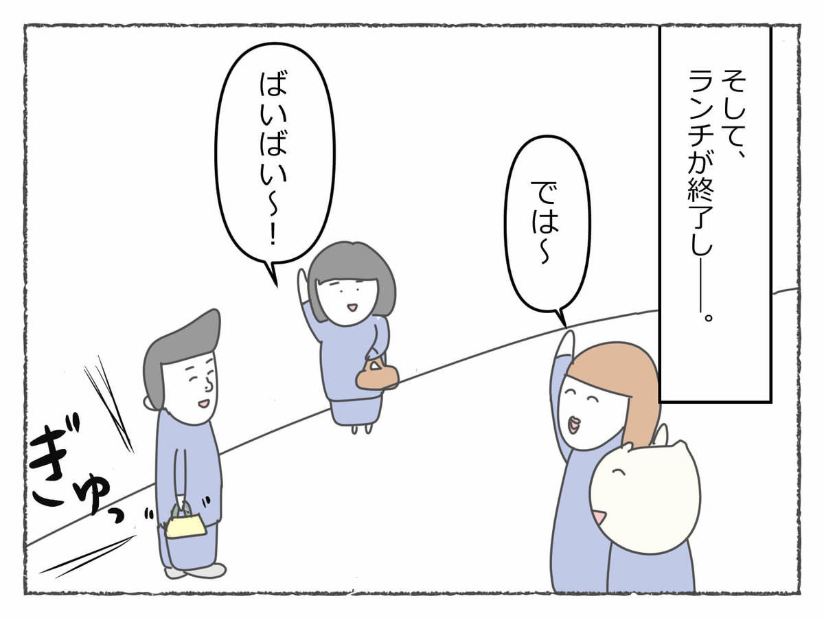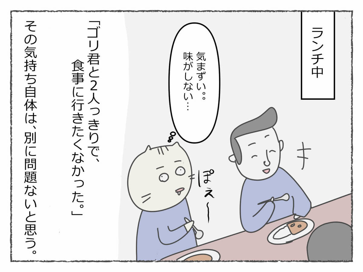 今回は「地獄のランチ再び編」。同期のゴリ君と2人きりのランチを避けるために、鈍子(どんこ)が仕組んだランチ会ということを知った、作者と同期のゴリ君。それを知りながら、ゴリ君が驚くべき行動に……!