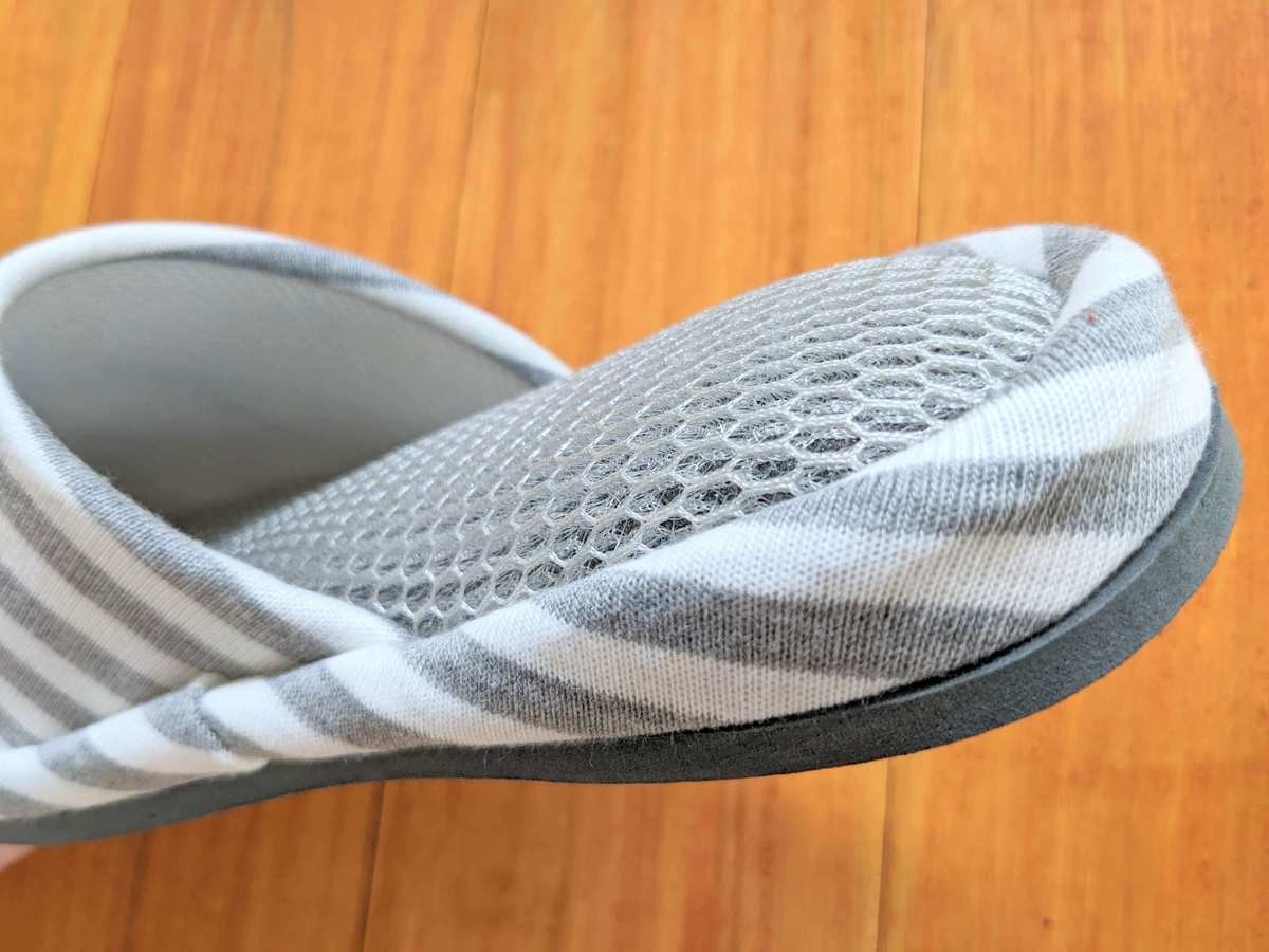 スリッパの中底にはメッシュ素材を使用しています。 土踏まずからかかとにかけて傾斜があり、立体構造で中が空洞のようになっているんです。