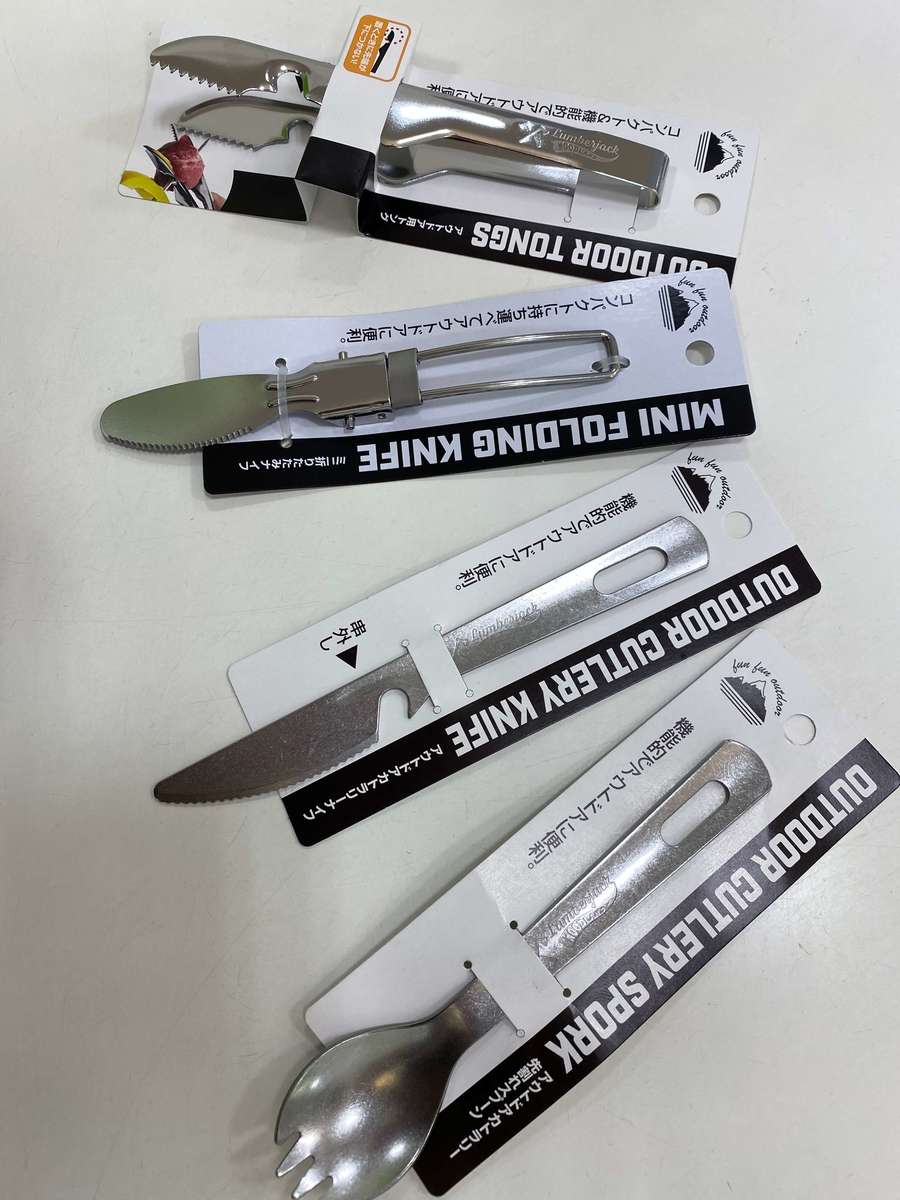 セリアのキャンプグッズコーナーで見つけた、こちらのカトラリー類。