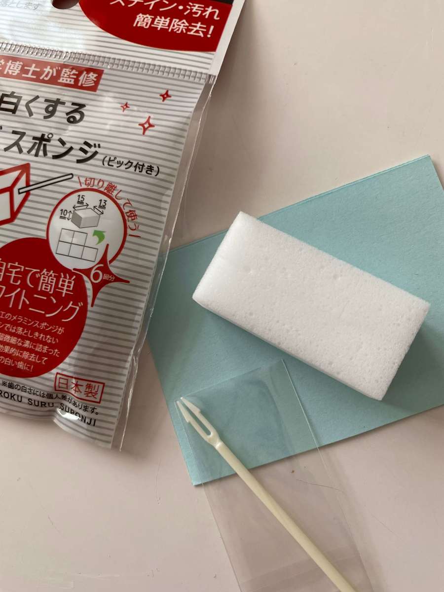 ピックに刺して、水をつけて歯の表面を磨くだけ。 正直な個人的感想として、ホワイトニング効果は分かりませんでしたが、歯の表面がツルツルになるのは間違いなく感じました。