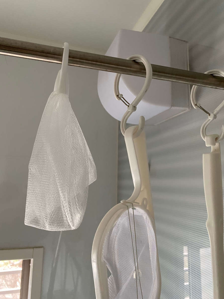 定番の泡立てネットですが、これのどこがお気に入りかって、まず全体カラーが白いというところ。