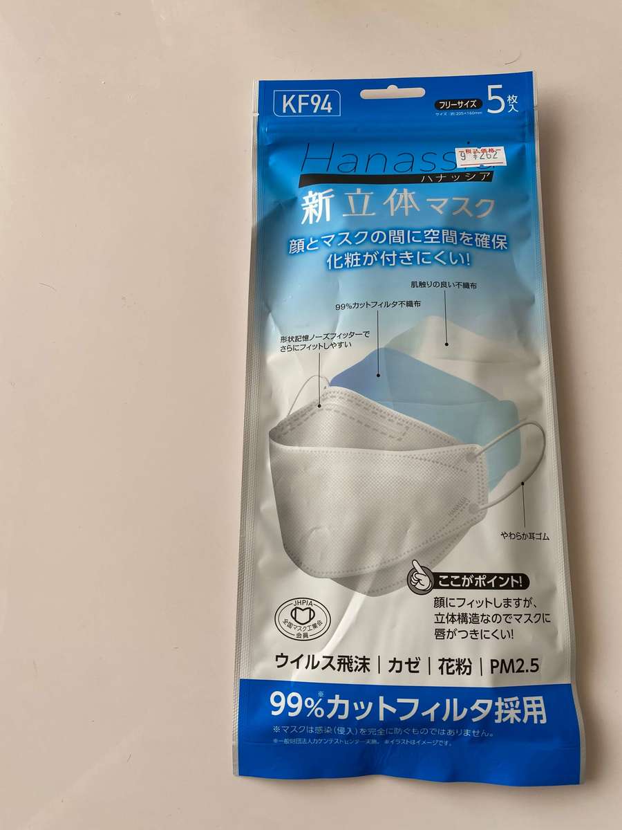 5枚で262円(税込)なので、この中では1番高額になってしまいますが、高機能マスクなので、例えば、人ごみの中に行かなければならない時や、病院に行く時など行く場所に合わせて使っています。