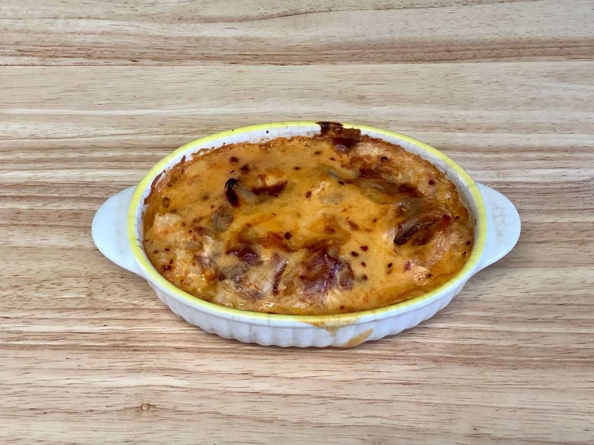 ごはんの上にかけてオーブントースターで焼いて出来上がりです。