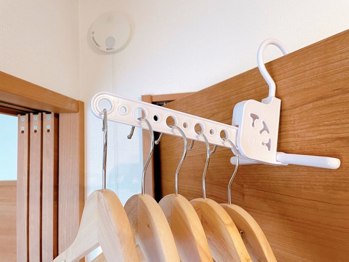 こんな感じで広げて使用すると、あっという間にハンガーが5つ引っ掛けられるスペースが登場。