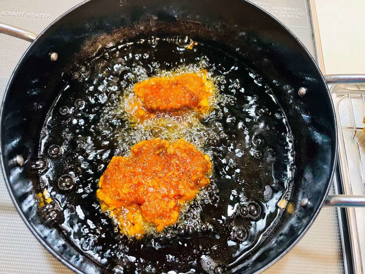 実際に揚げてみると、ときどき油が跳ねるので調理の際にはご注意ください。
