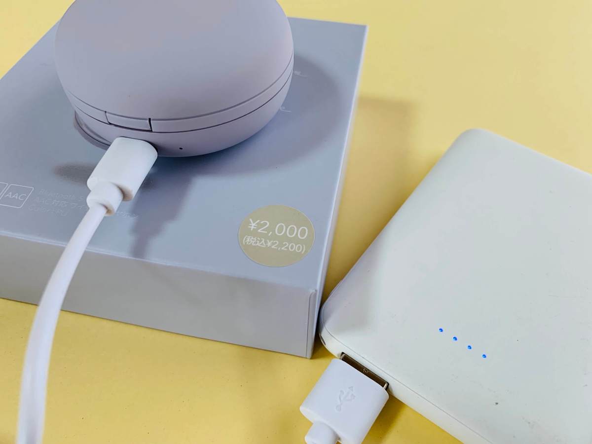 充電ポートには 、付属のUSBケーブル(Type-C)を使って充電します。充電が始まるとLEDランプが赤色に点灯し、満タンになると消灯します。