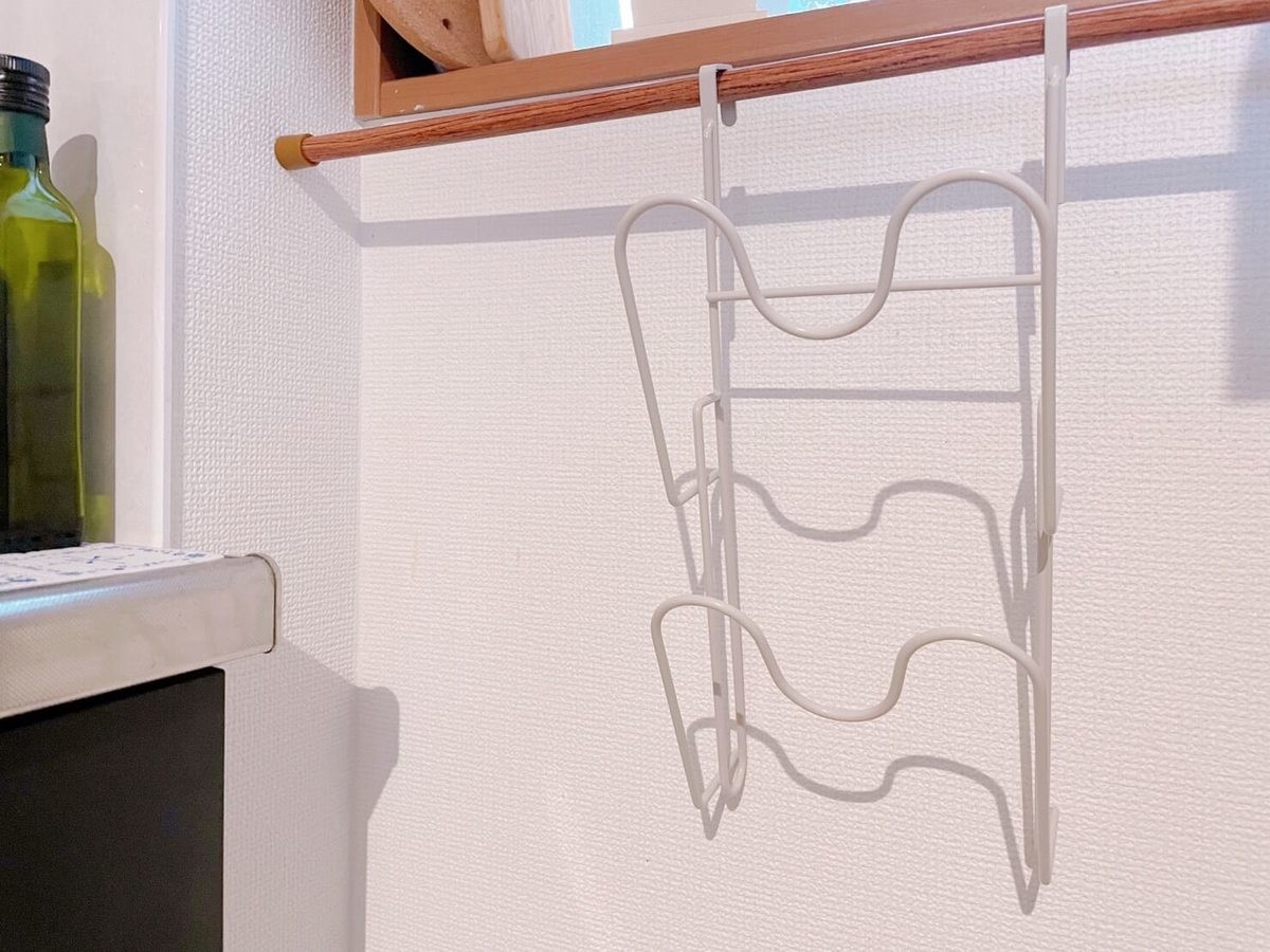 それがこちらの「引っ掛け鍋蓋収納(330円税込)」。限りなく存在感を消してくれるデザインが気に入りました。
