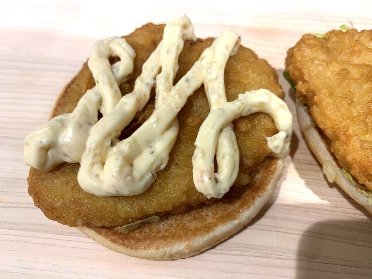 マックアレンジ②チキンクリスプにタルタルソースをかける