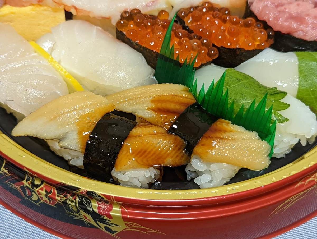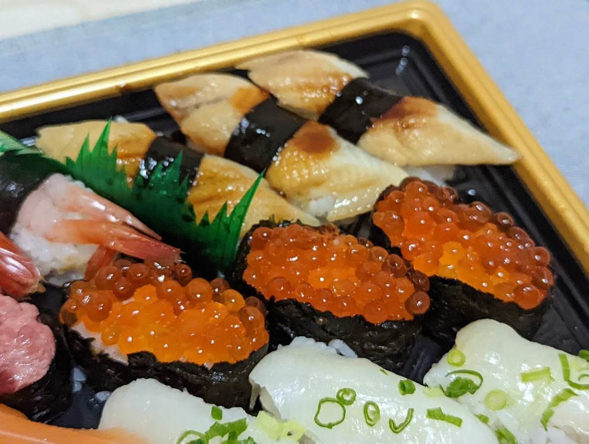 コストコの「寿司ファミリー盛」には入っていない、イクラや穴子が入っているので大人の満足度は上がります。