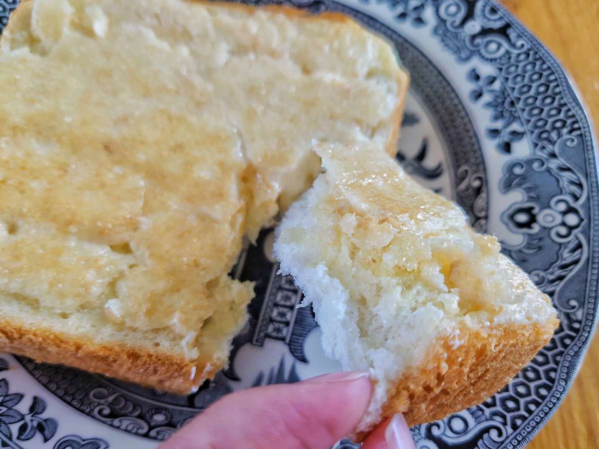 上の方はパリパリですが、下はバターがパンにシミシミで至福です♪