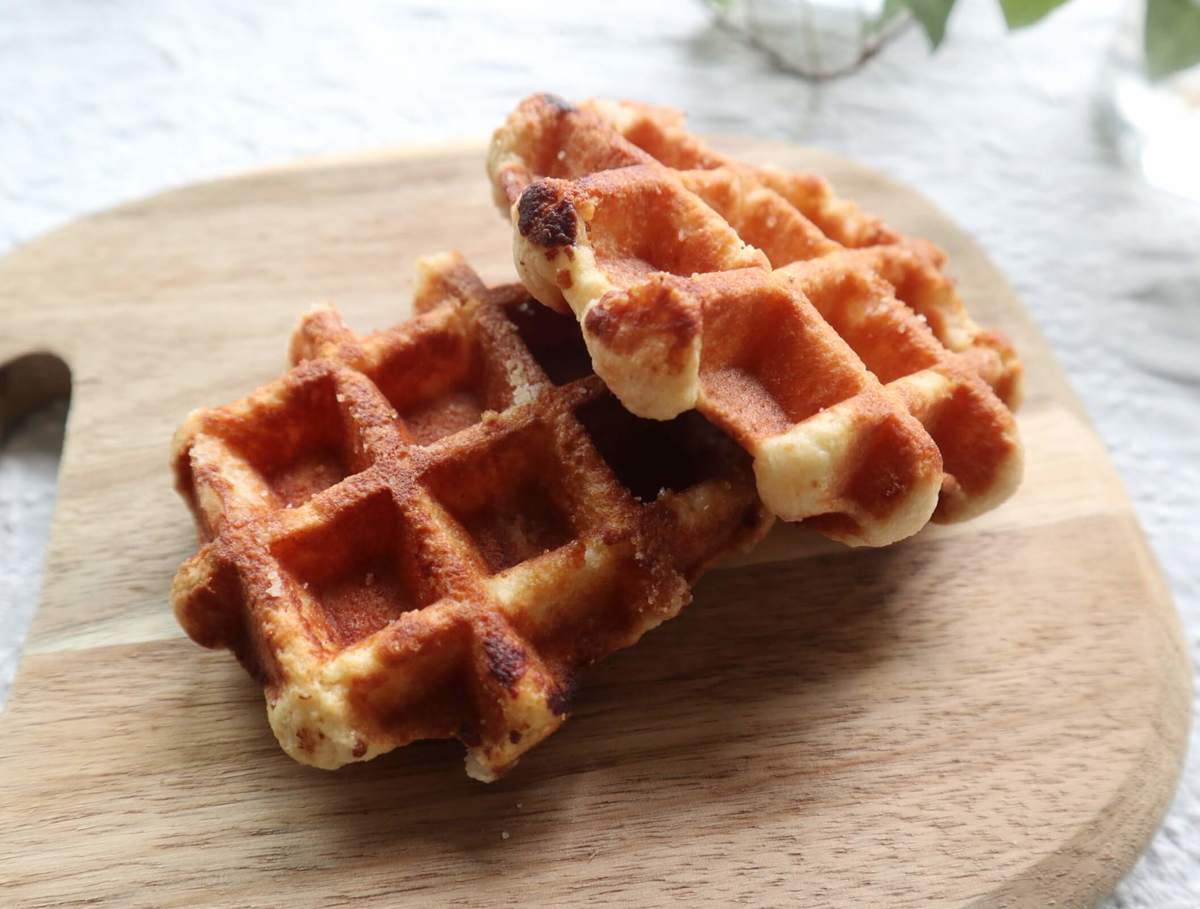 ベーコンエッグを添えて朝ご飯にするのもおすすめです。ワッフルとベーコンとの甘塩っぱい組み合わせはたまりません。