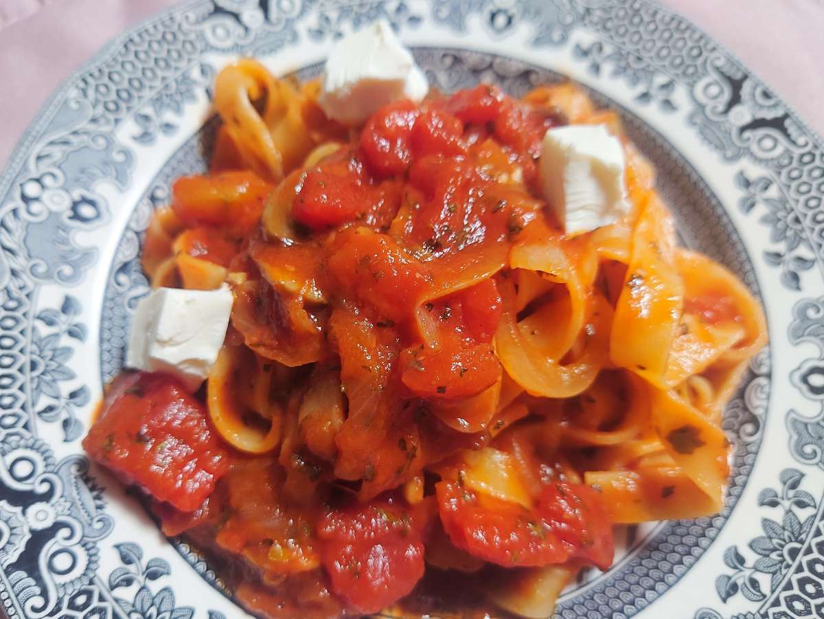 お好みでバジルや塩コショウで味付けすれば、トマトパスタソースの出来上がりです。
