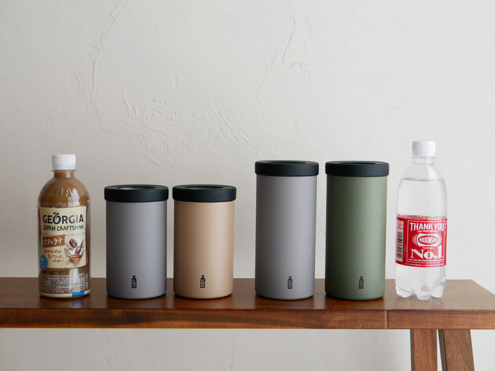 ペットボトル飲料がすっぽり入る「BOT. GO MUG」は2サイズの展開。