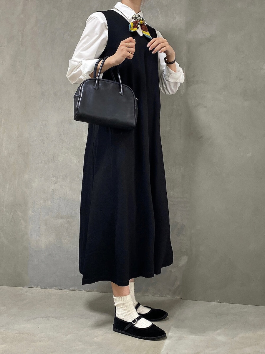 ノースリーブワンピはウエスト周りがゆったりしているからレイヤードスタイルも可能です。