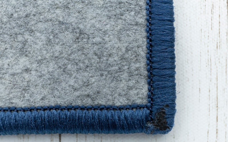マットのフチはロック加工(オーバーロック加工)が施されており、ほつれにくくなっています。マットとしての高級感もあり、丈夫で長持ちするので、長くご愛用頂けます。