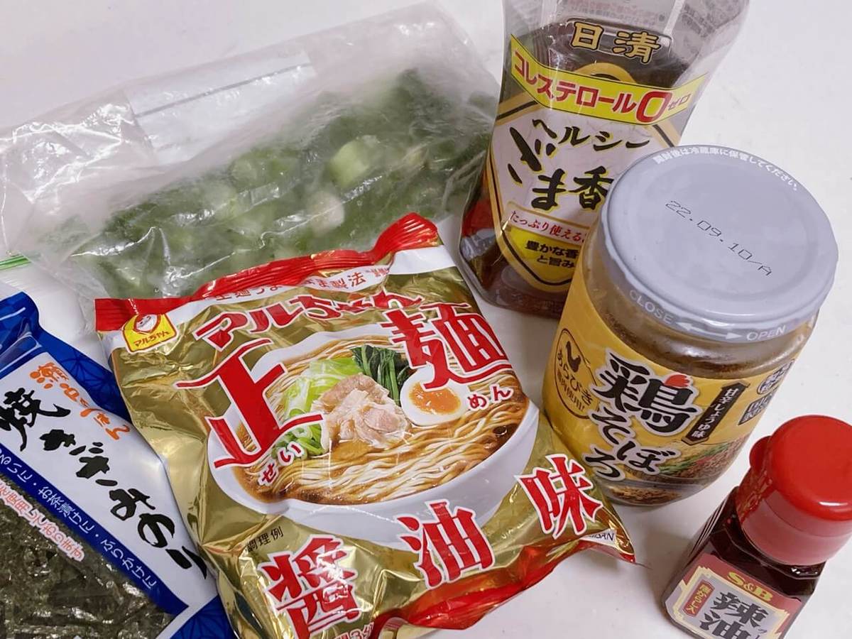 どのメーカーの袋麺か記載はありませんが、インスタのコメント欄を見るにマルちゃん正麺の醤油味のようです。