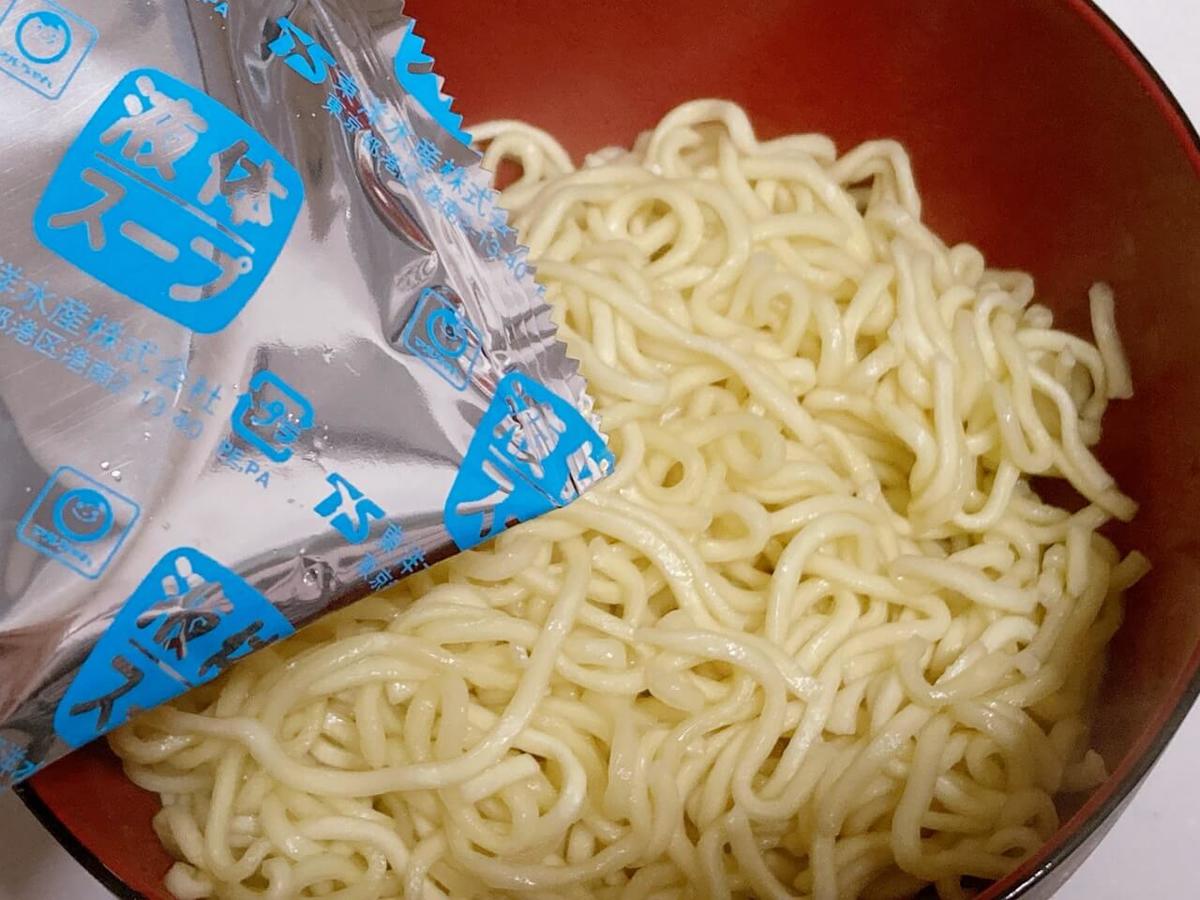「番組内ではマルちゃん正麺醤油味」というインスタのコメントを見て、それに倣いストックしていたマルちゃん正麺で挑戦。
