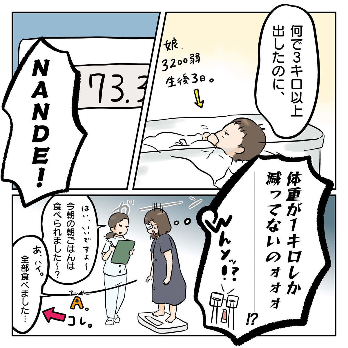 【共感!産後太り漫画】出産3日後の悲劇!あれ?体重減ってない…?(涙)【17kg太って17kg痩せた後ダイエットを辞めました①】