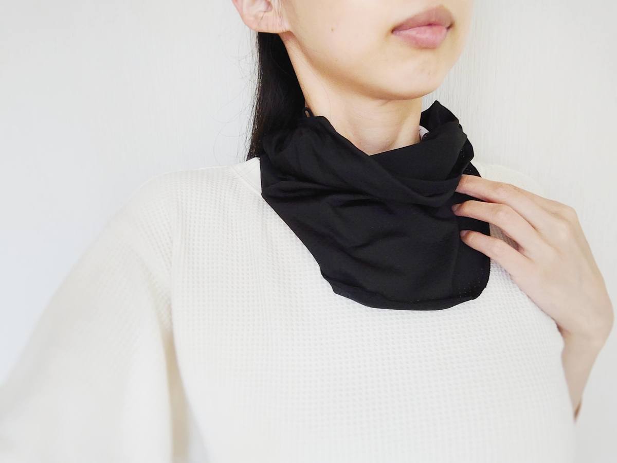マスクいらずで顔の下半分から首まですっぽりカバーすることができますよ。