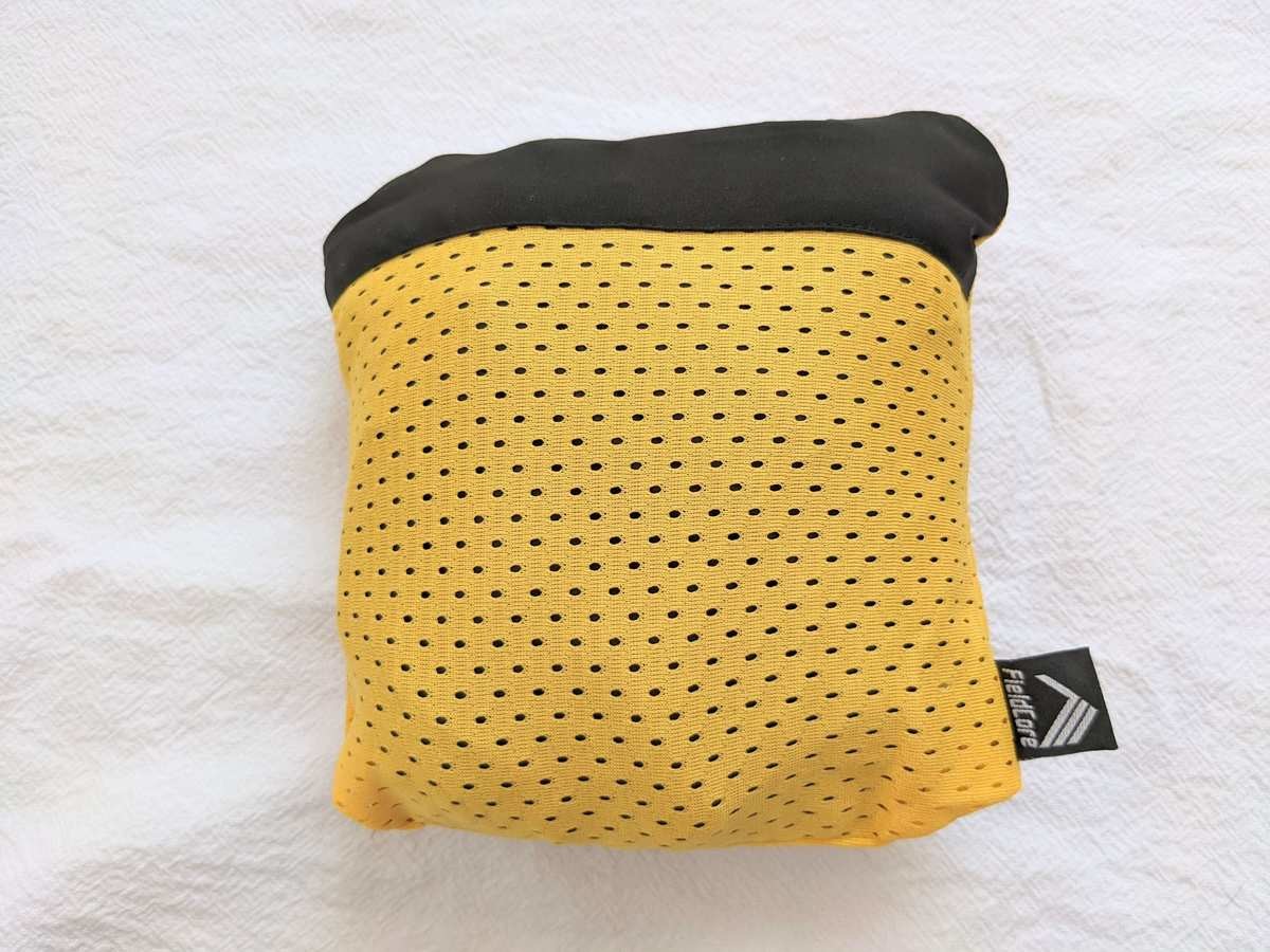 こちらのスカートは、パッカブル仕様を備えているためコンパクトに収納もできます。 片側にファスナー付きのポケットが付いていて、表に出すと収納袋になります。