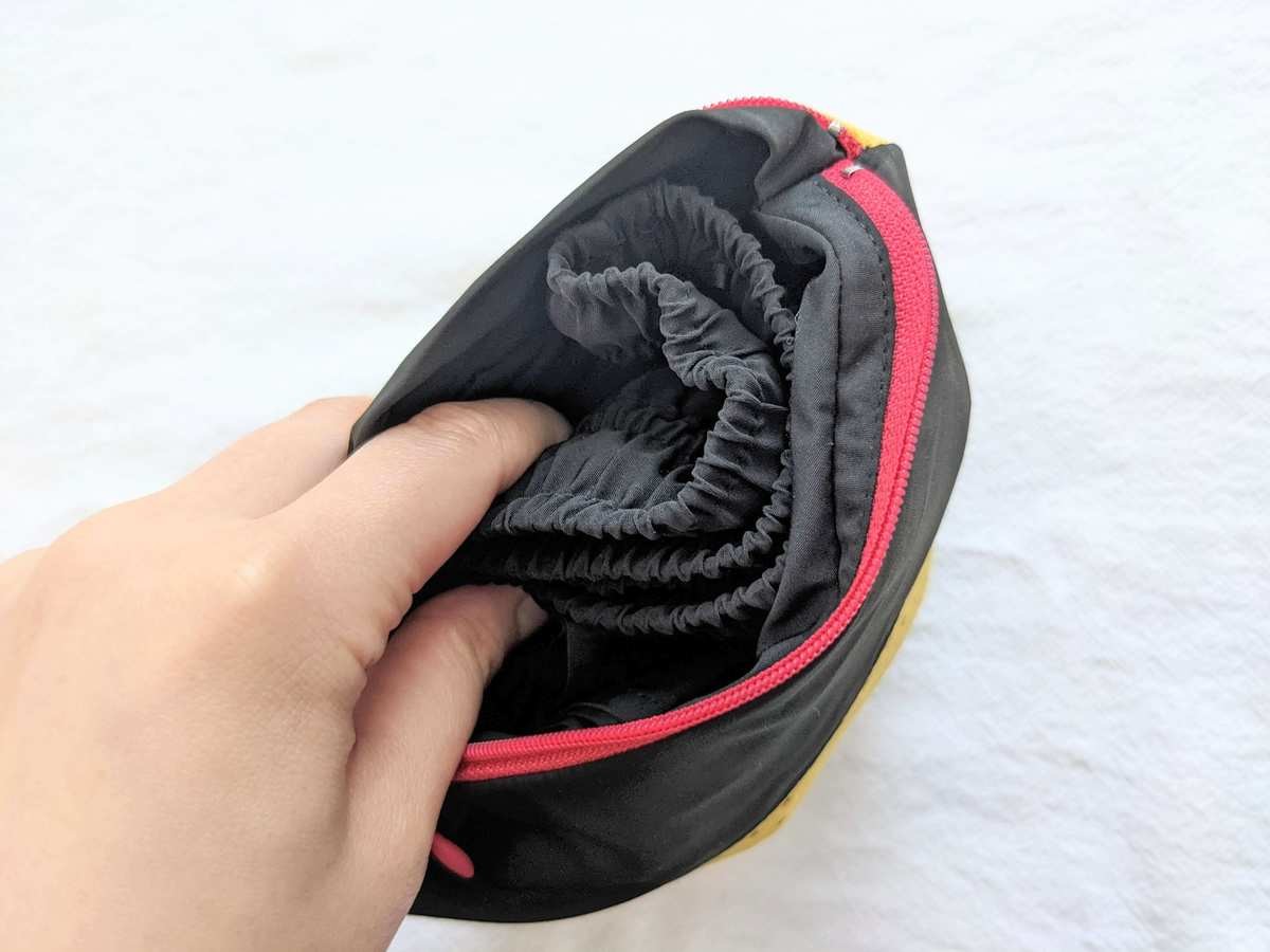 ファスナーを閉じれば完了です。 コンパクトに収納できるため、旅行の際もかさばらずに持ち運べます。