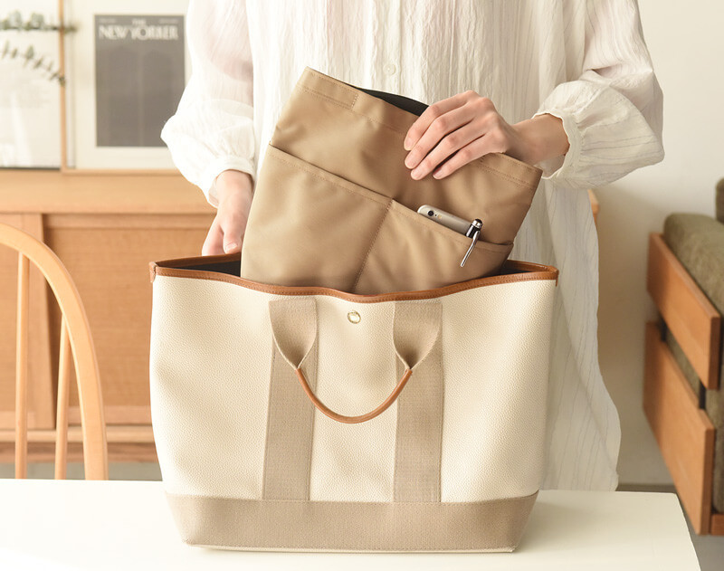 通勤バッグ、休日のマザーズバッグなど、シーンで合わせるバッグが変わっても、バッグインバッグを移し替えるだけなのでラクラクです。