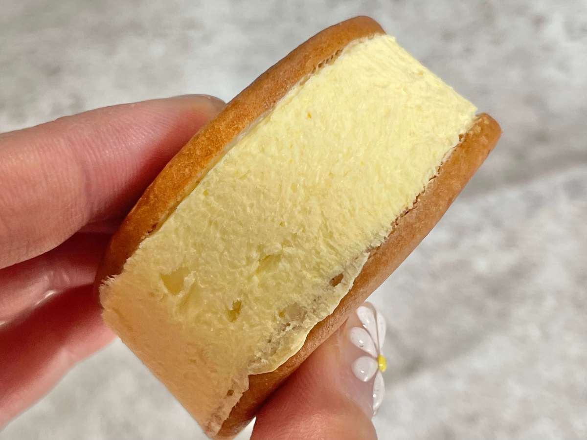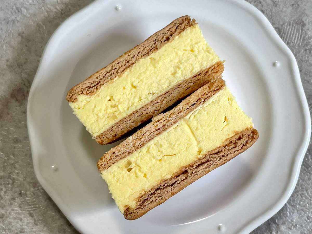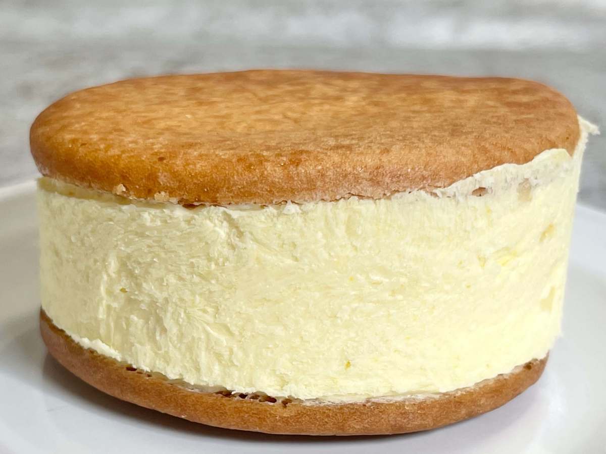 発酵バター入りビスケットには、バター、2種類のチーズ、瀬戸内産レモンピールなどをブレンドしたレアチーズクリームがサンドされています。