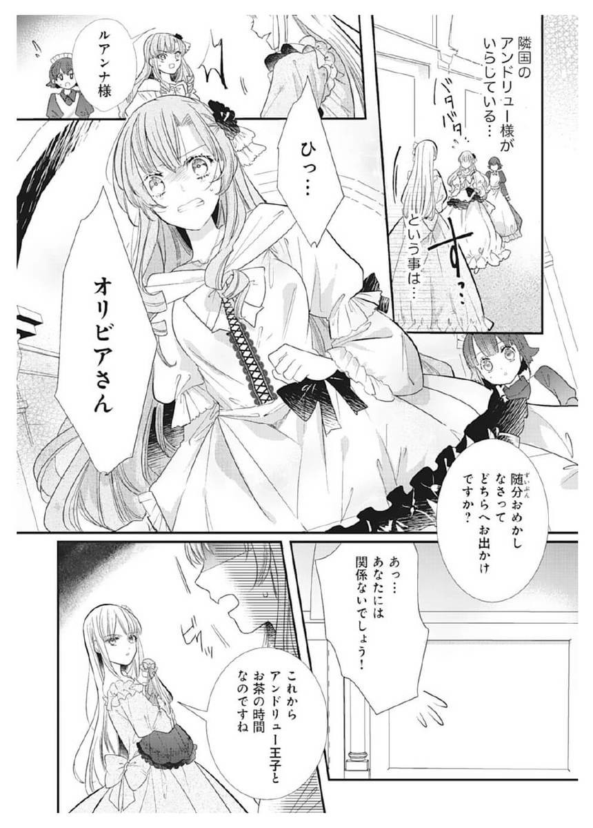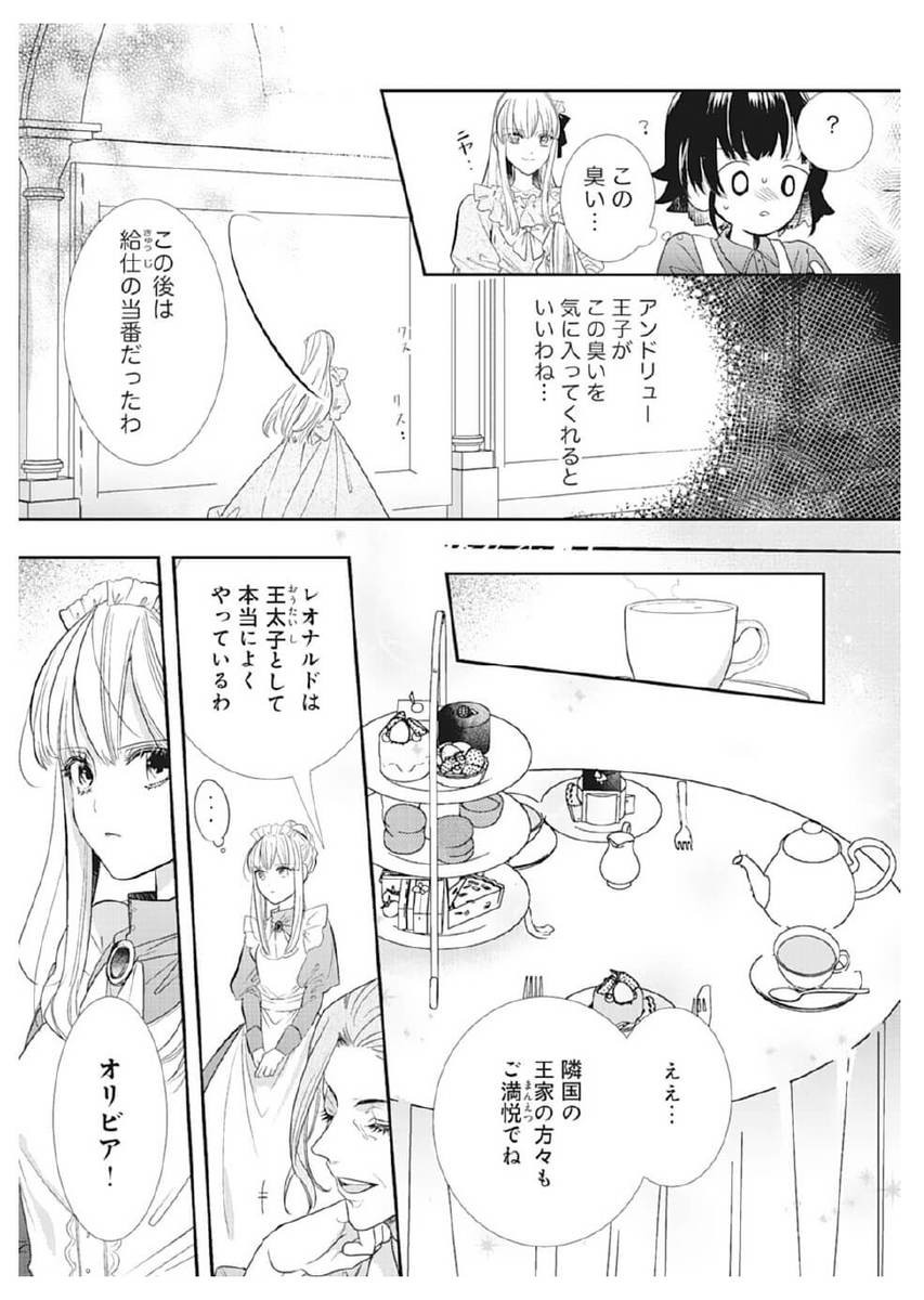 “王太子・レオンの花嫁の座を射止めよ”という父の命で、王妃の侍女勤めをしている公爵令嬢・オリビア。