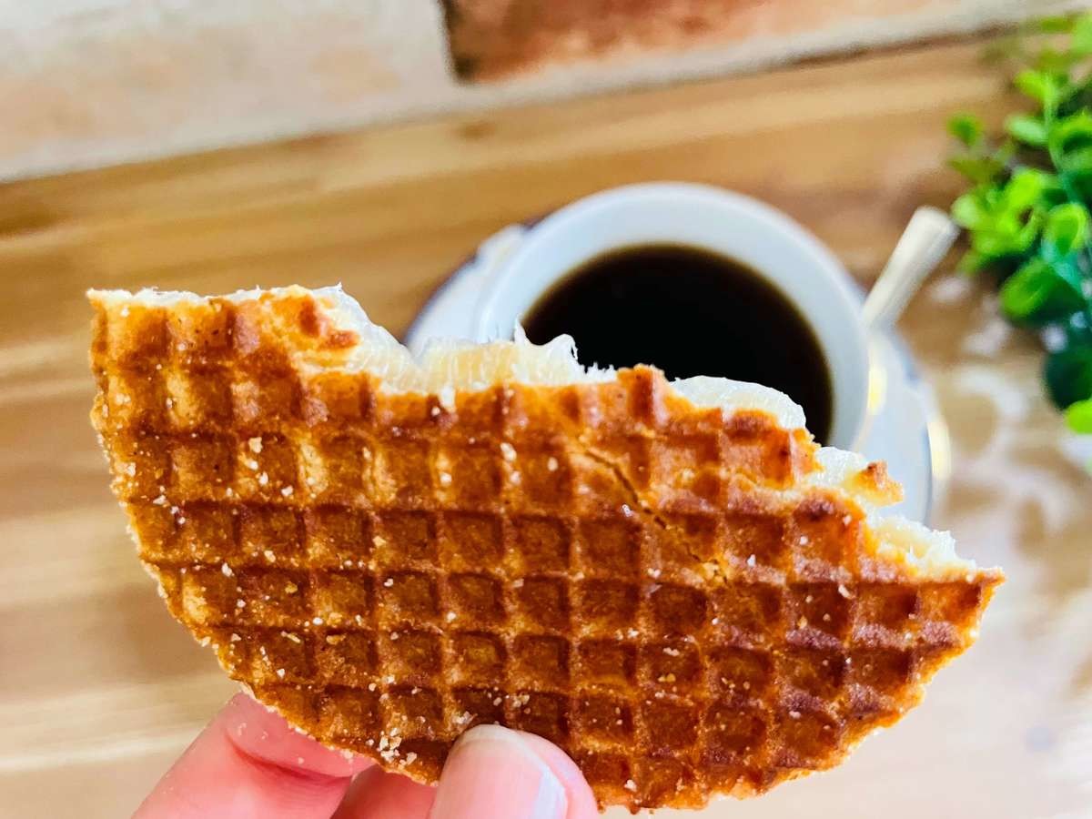 続いて、カップの上に置いて温めたストロープワッフルを実食。