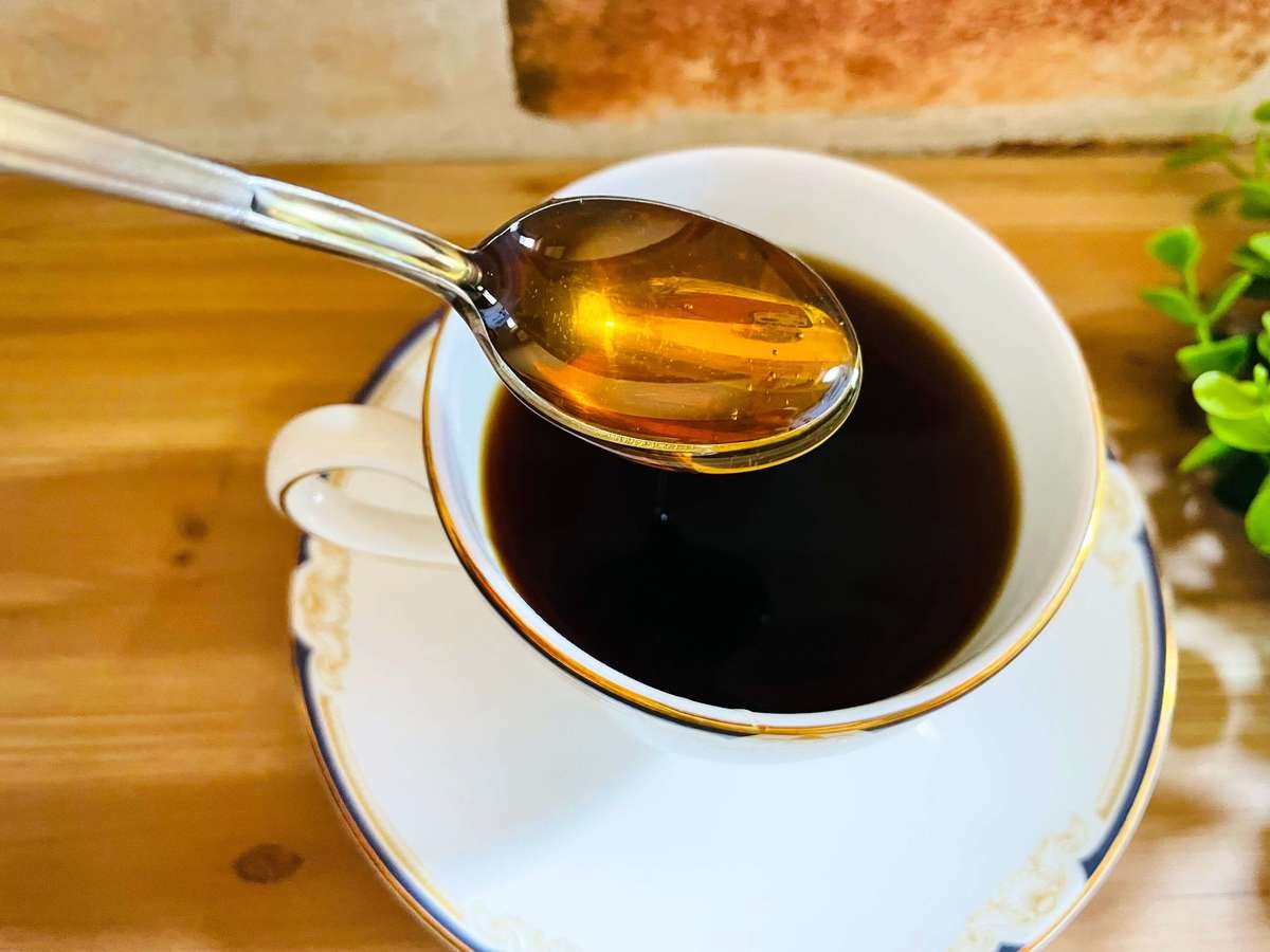 入れる量にもよりますが、ティースプーン1杯くらいだと甘さの主張はさほどなく、はちみつのいい香りだけがプラスされる感じです。 使用したのはスーパーで売っている普通のドリップコーヒーですが、ちょっと高級感が増すような気分になります(笑)