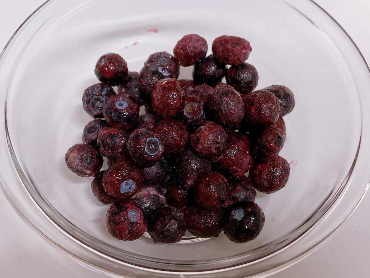 冷凍ブルーベリーはヨーグルトに入れたり、ケーキのトッピングにしたり幅広く使えるし常時ストックするのもオススメ。