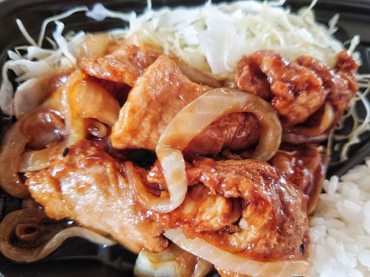 肉厚な豚バラ肉を使用した「生姜焼き弁当」がなんと300円以下♪