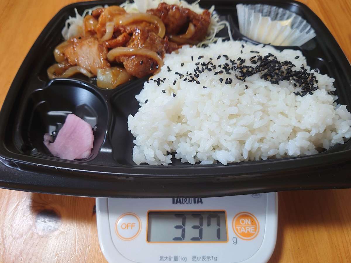 ごま塩がのったごはんと、お肉のたっぷりな詰まり具合が期待大♪