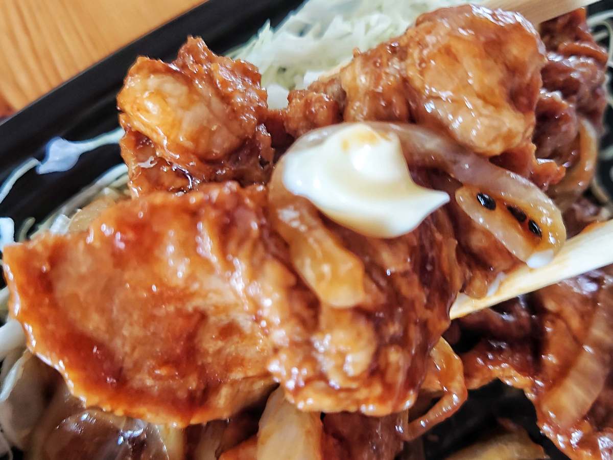 生姜焼きにマヨネーズを付けて食べれば、こってりマシマシ!