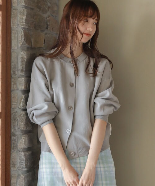 こちらは明るい印象を与える「ライトグレー」のカーディガン。