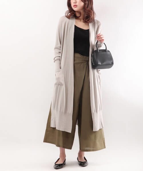 清潔感重視のオフィスカジュアルには、シンプルなロングカーディガンを取り入れるのがおすすめ。