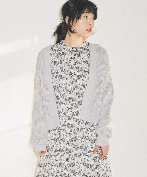繊細な編み目により、程よい透け感が施されているこちらのカーディガン。白よりのグレーなので、明るい雰囲気を纏いたいときにぴったりです。