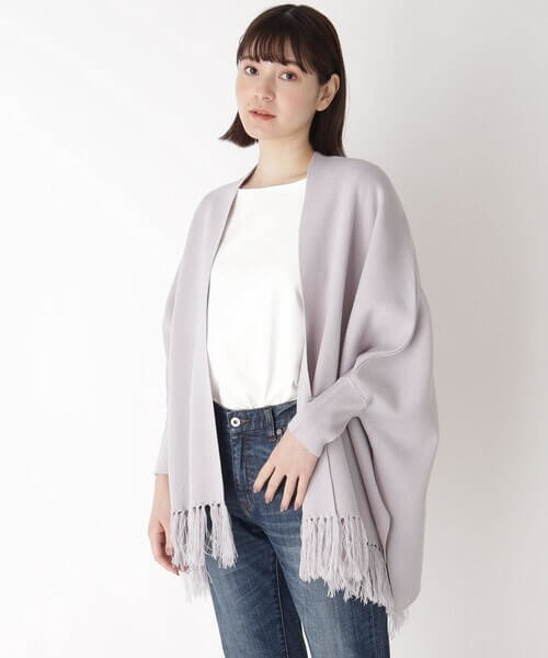 ストールを羽織っているように見えるフリンジ付きカーディガンで、エレガントなきれいめコーデを作りませんか?華奢見せも叶うゆったりとしたデザインのアイテムです。