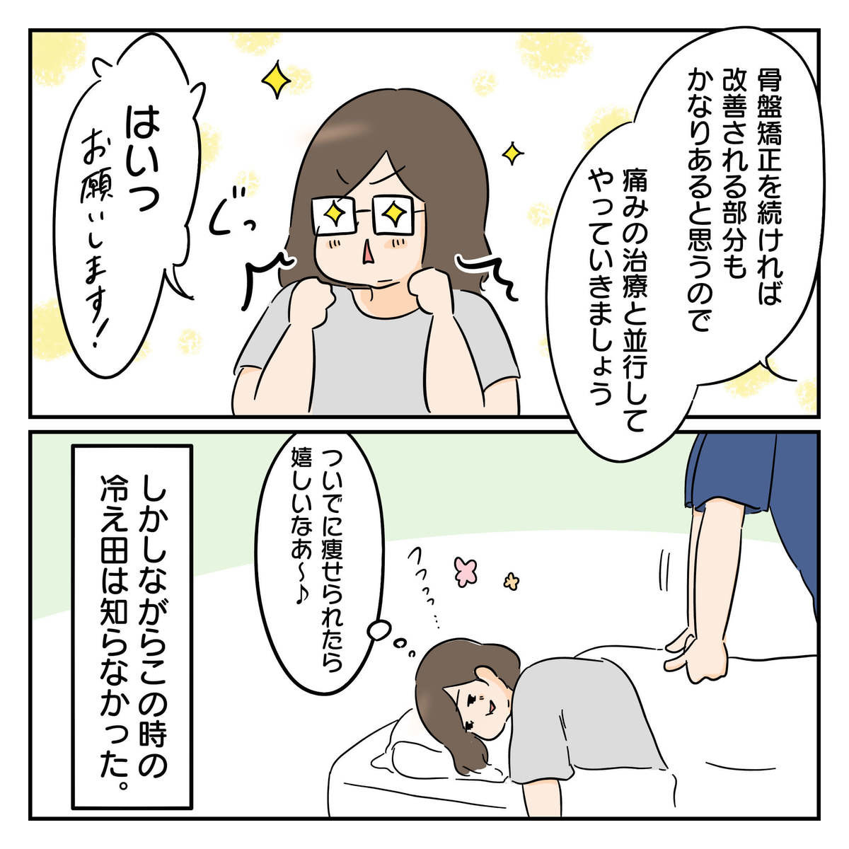 施術だからなぁと思いつつも、めちゃくちゃ高い~~~(涙)!冷え田さんも「1回2,000~3,000円くらいな もんだと思ってましたね……しかも何回も通わないと行けないという……」とコメント。