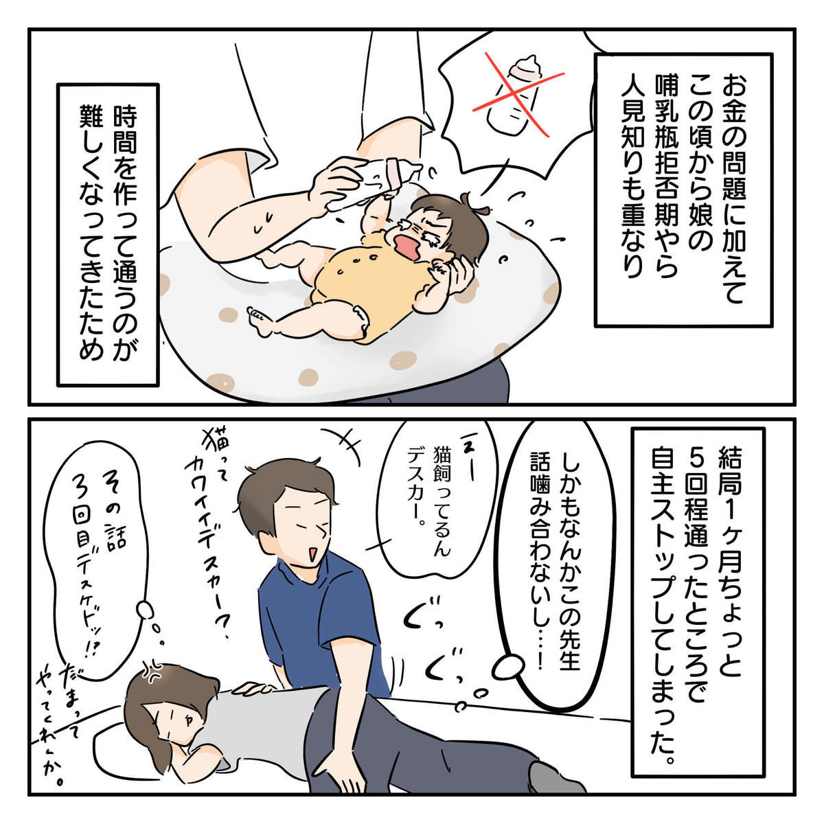 「骨盤矯正のお高さに愕然。一応、5回ほど通ってフェードアウトという結果に終わりました。記憶だとこの時期はおそらく産後4、5ヶ月ごろで、他力本願ですがジーパンが上がるところまで到達いたしました!」(冷え田やっこさん)