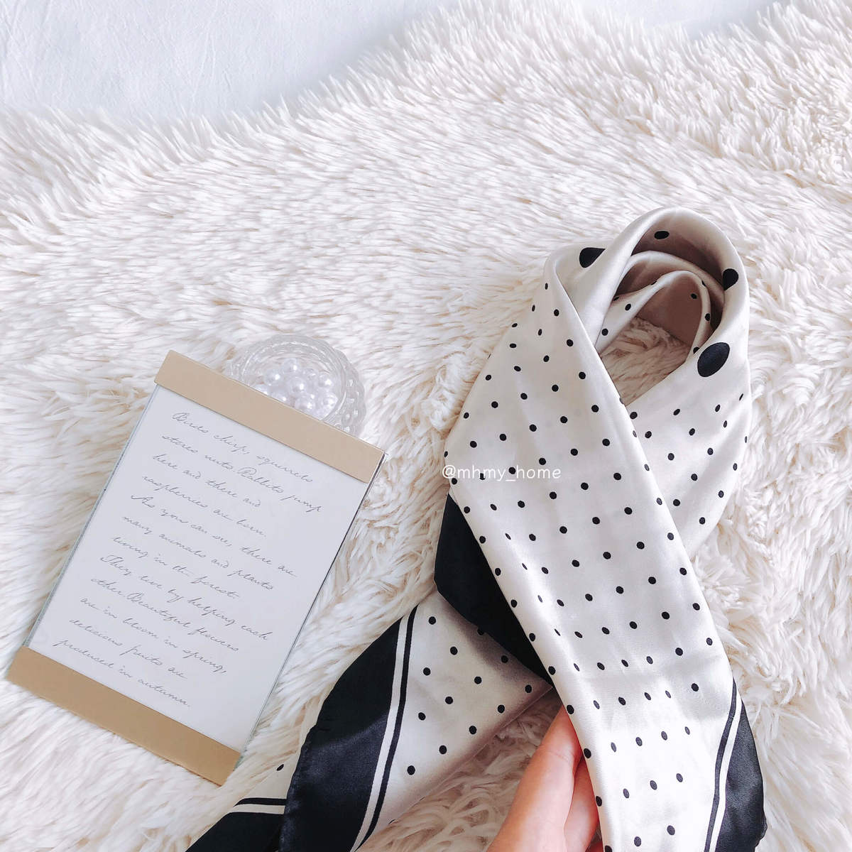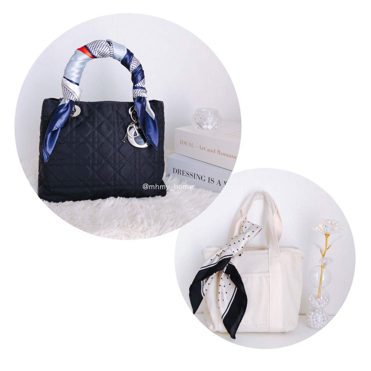 スカーフって実は色々と万能で、バッグに巻くにも巻き方や柄で印象をガラッと変えられます。