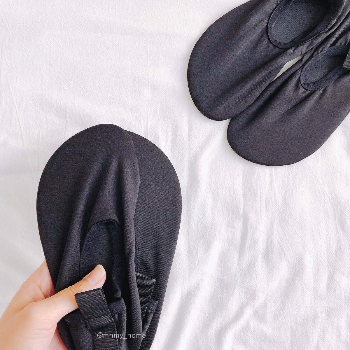 裏は薄めのゴム底で凹凸の滑り止めが。柔らかいソックスタイプで足にしっかりフィット!これなら砂も入りにくく怪我からも守ってくれそうです。